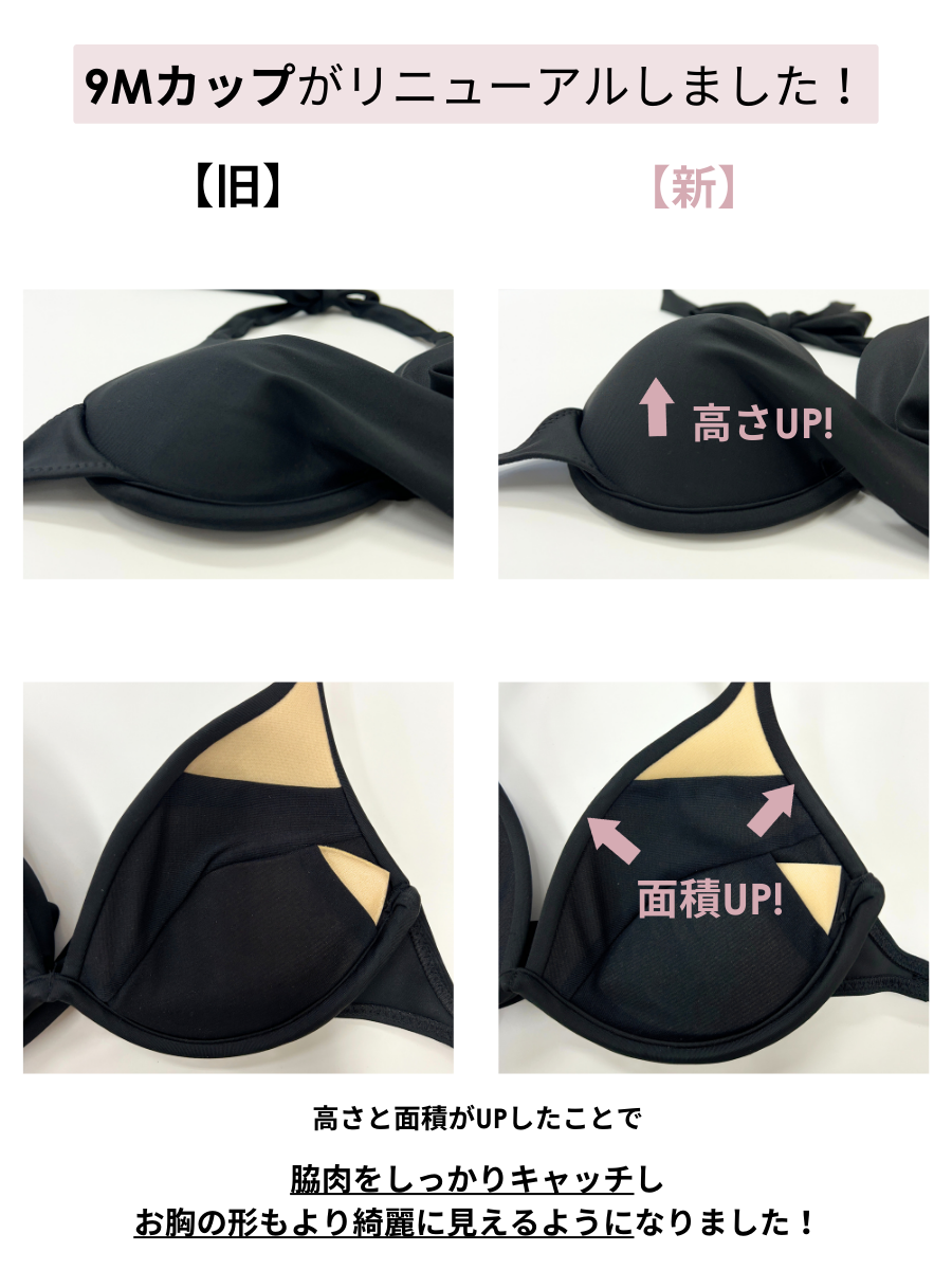 ワイヤーとパッド、首紐によって自然な盛り上がりのあるバストをメイクし