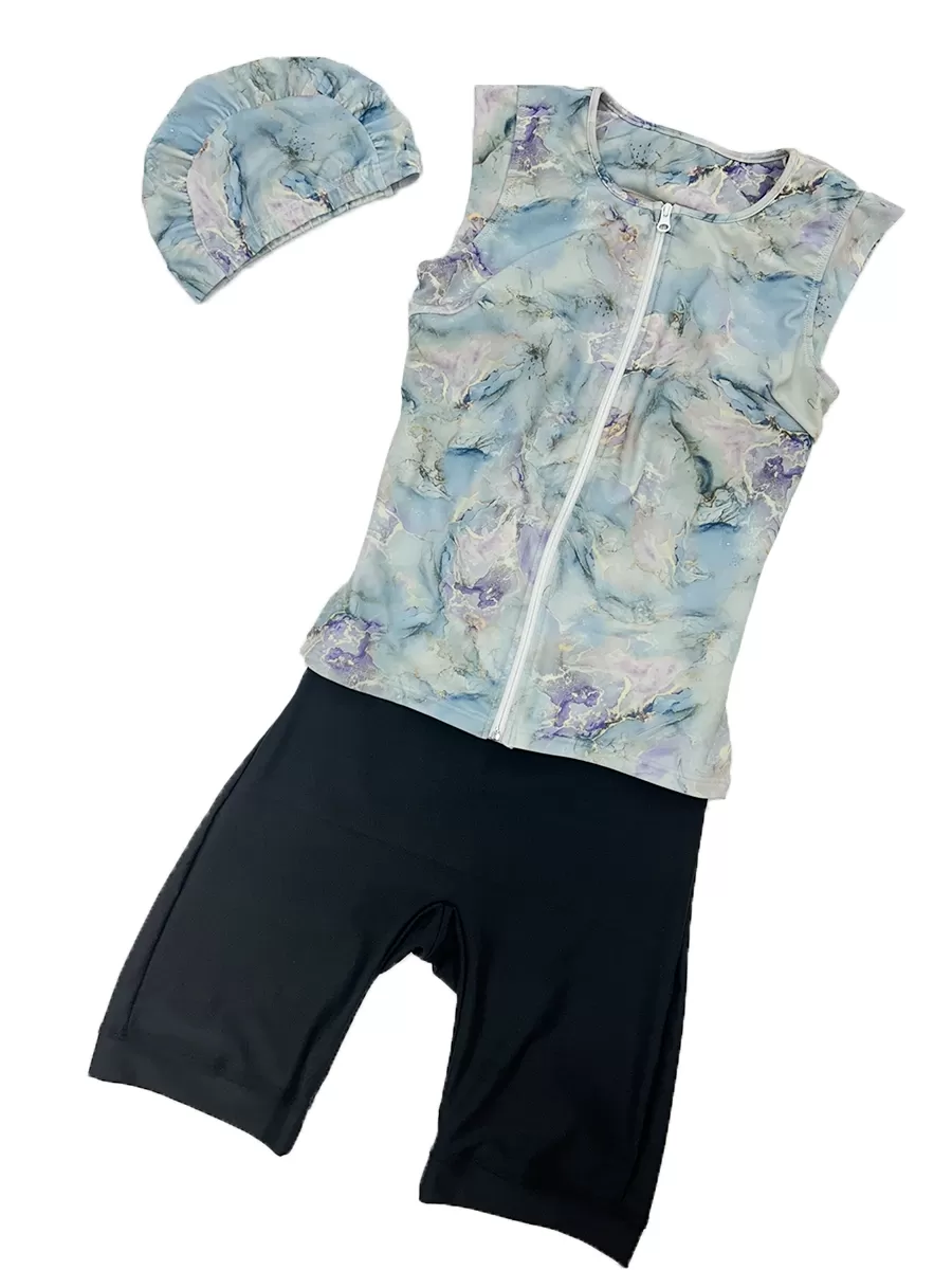 抽象柄プチスリーブフィットネス水着