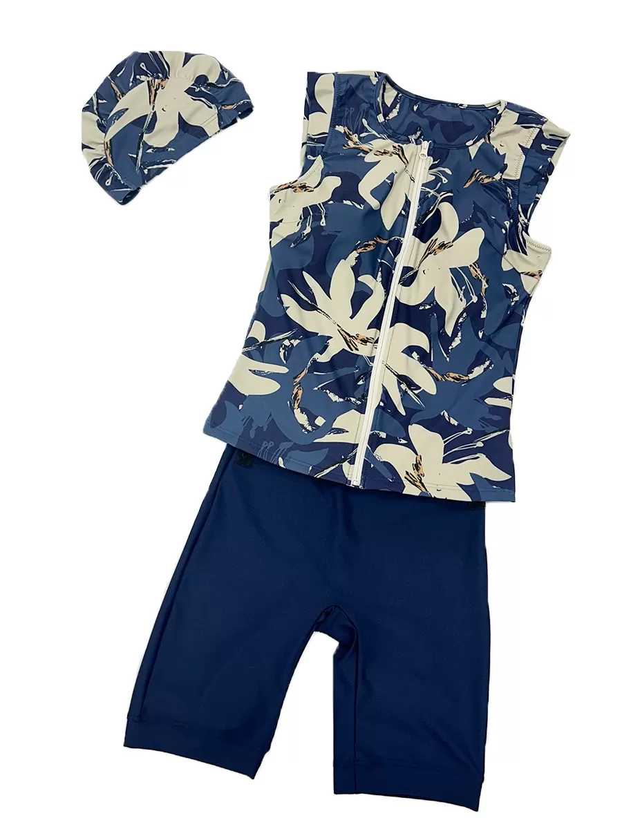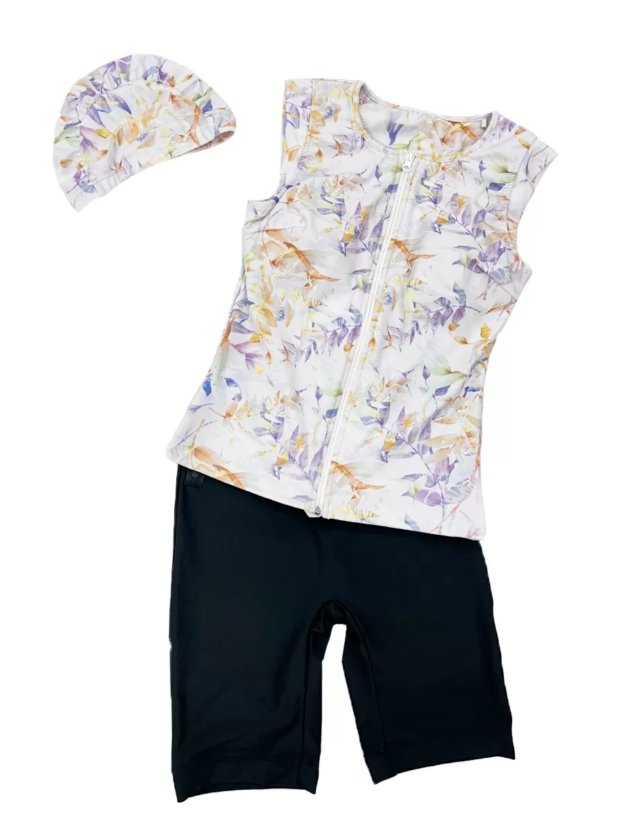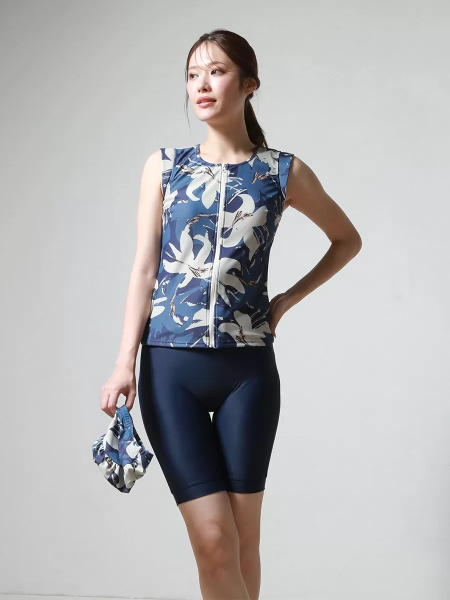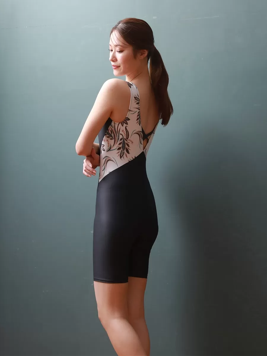 オリエンタルフラワー柄オールインワンフィットネス水着