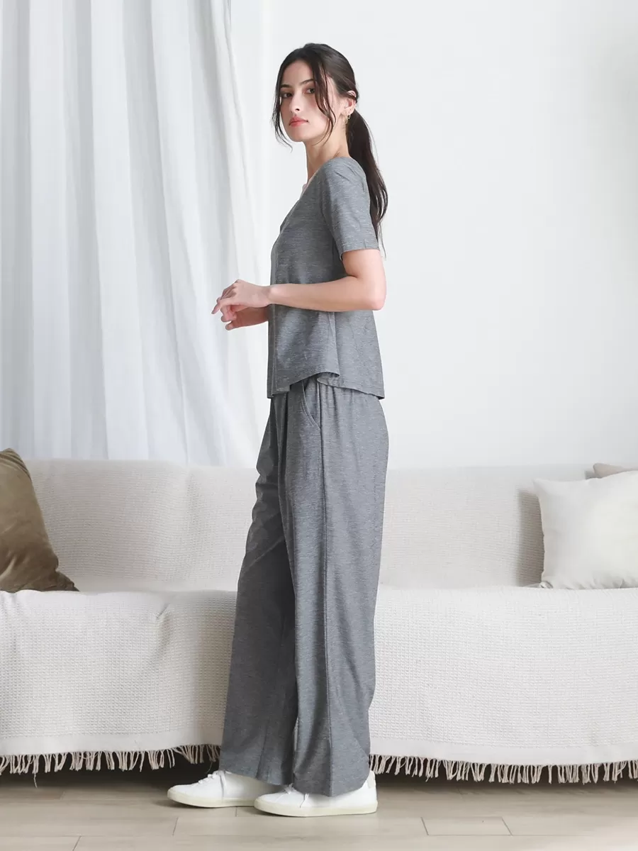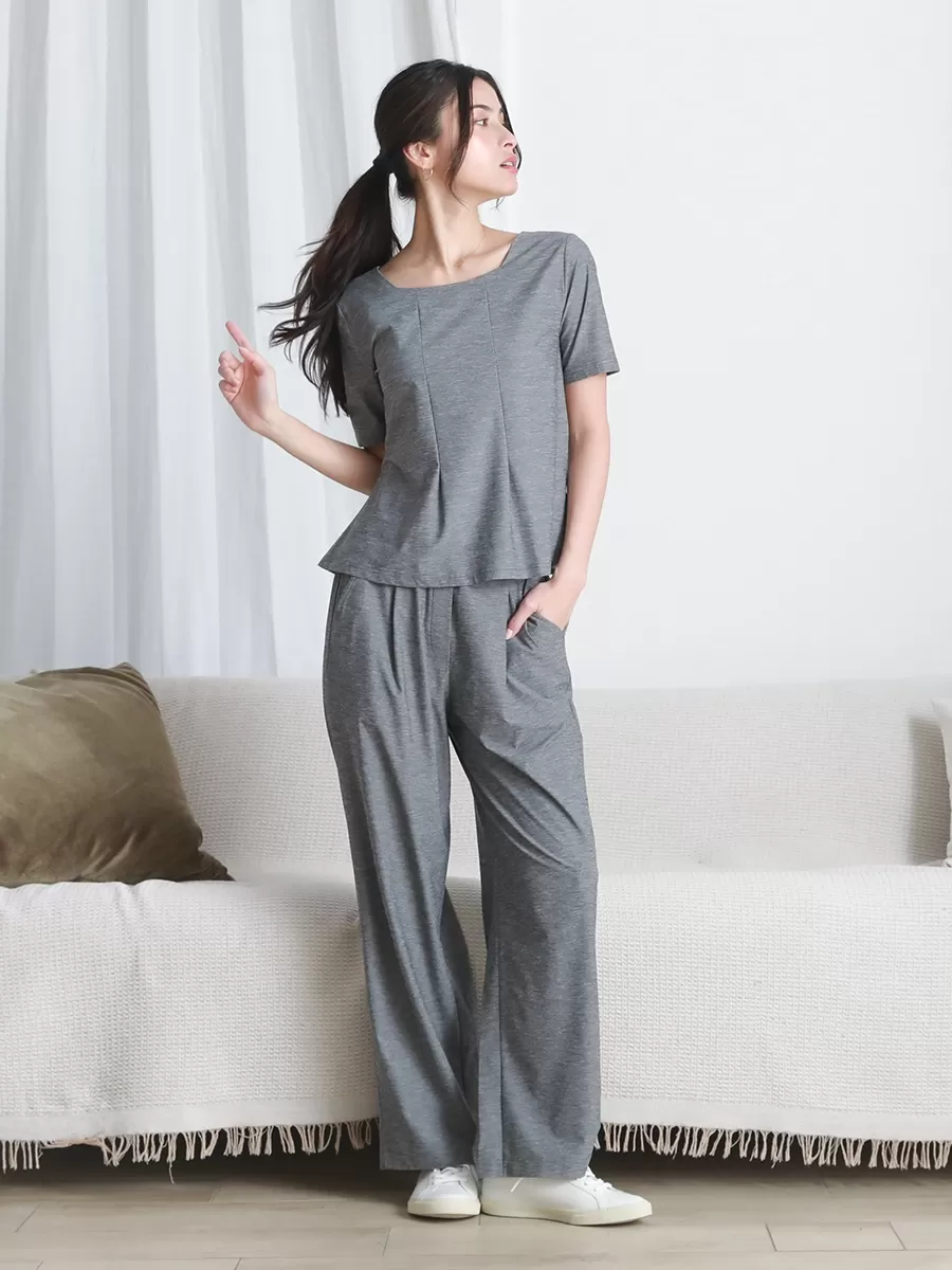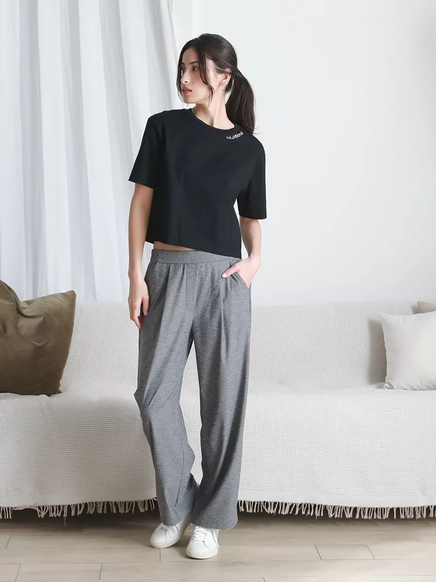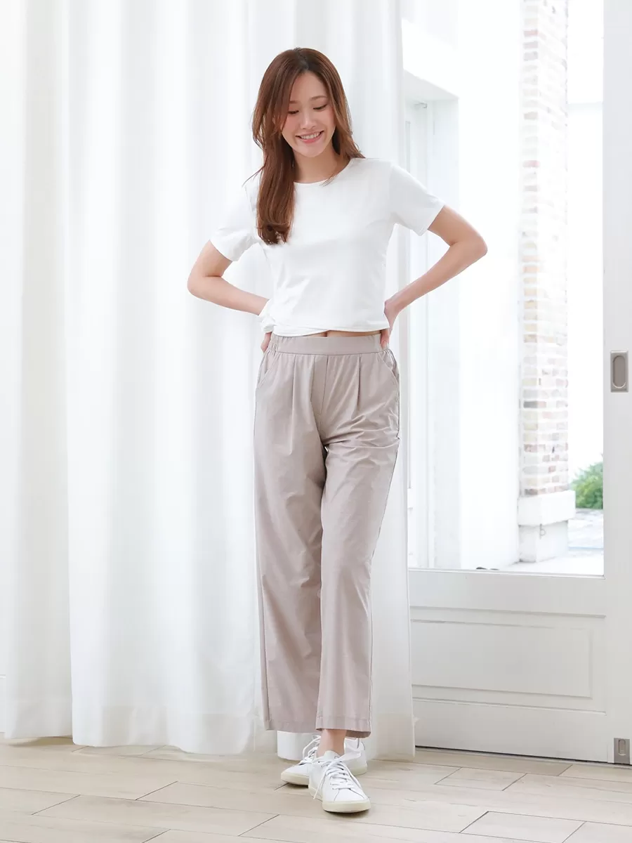 トップス同様、ストレッチ性がある柔らかい生地感で履き心地も快適◎