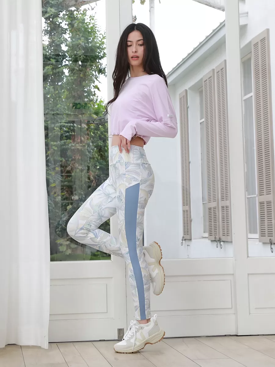 ペールトーンリーフ柄バイカー丈/ショートレギンス