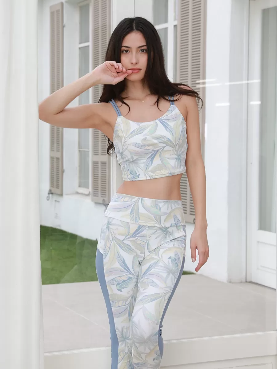 ペールトーンリーフ柄ストラッピーショルダーブラ