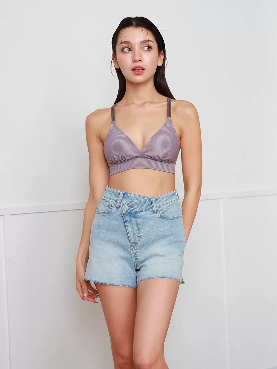 Vラインハイウエストフリンジデニムショートパンツ
