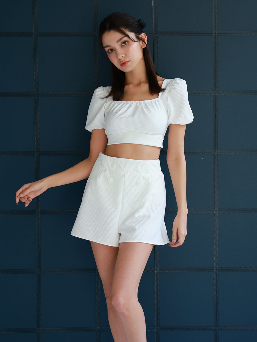 ふんわりボリュームパフスリーブブラと、スーパーハイウエストのショーツを合わせて