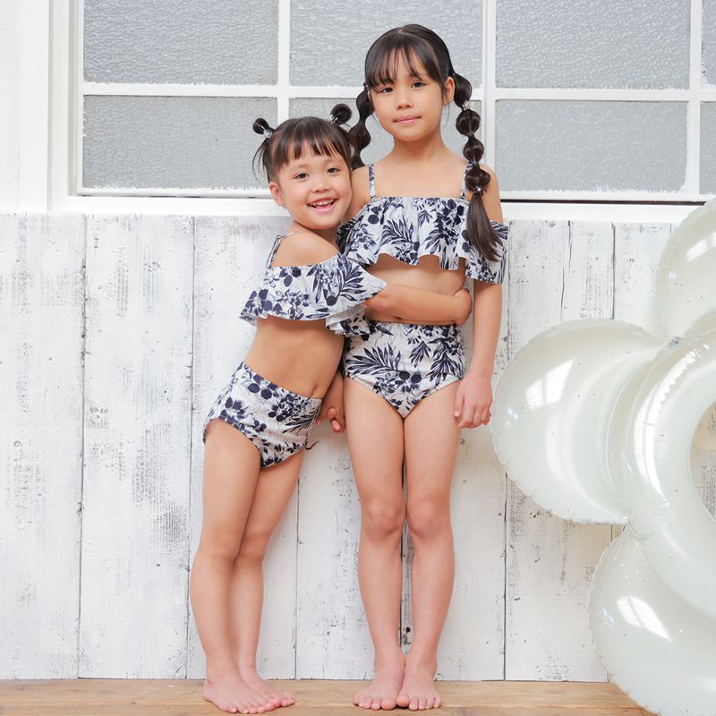 ヴィンテージアロハ柄オフショルビキニ/キッズ子供水着2点セット No.248201 17,600円(税込)