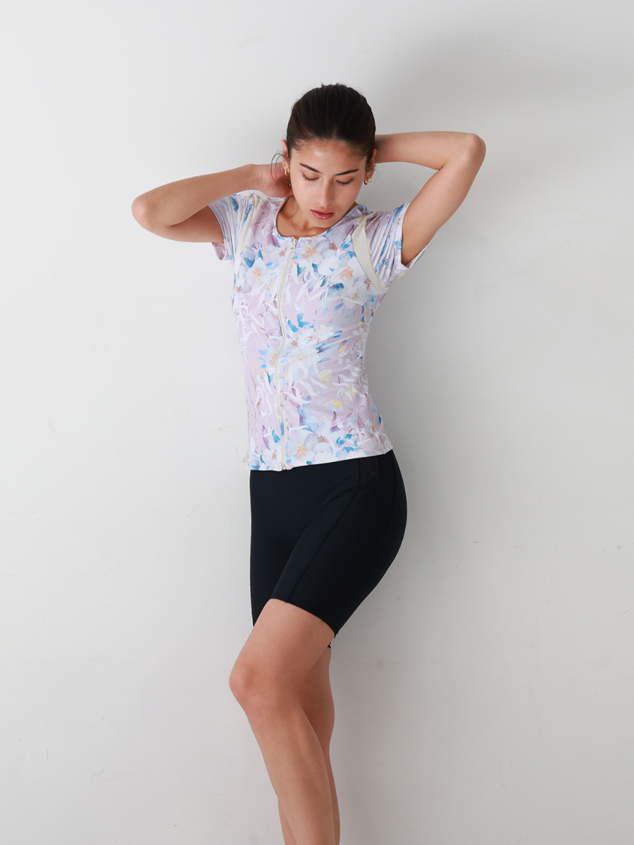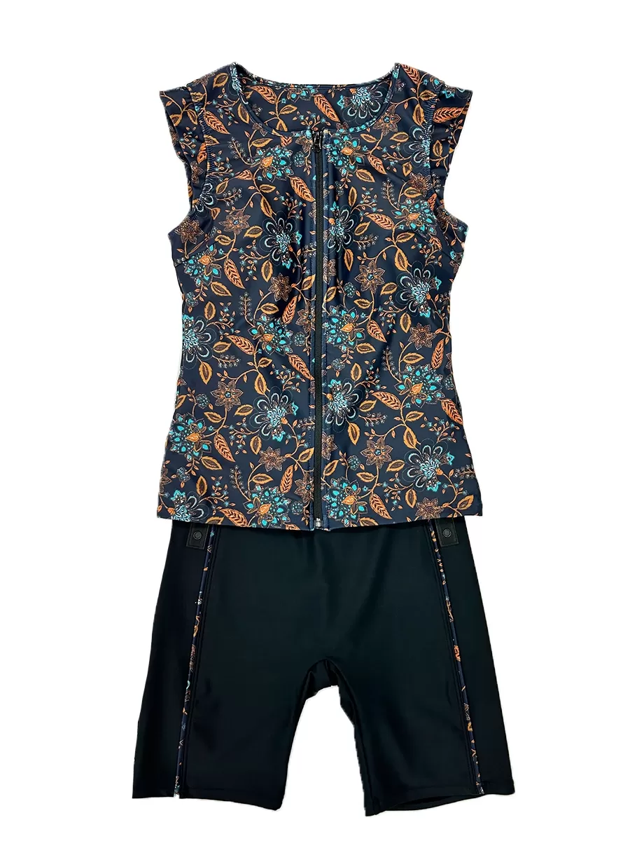 エレガントフラワー半袖フィットネス水着(243100)