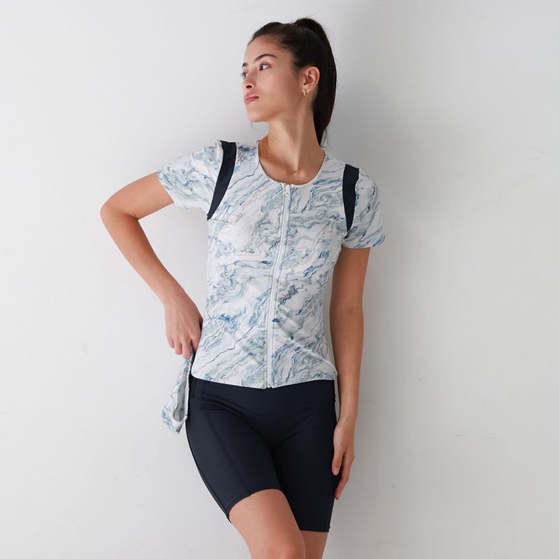 マーブル柄半袖フィットネス水着(243111)