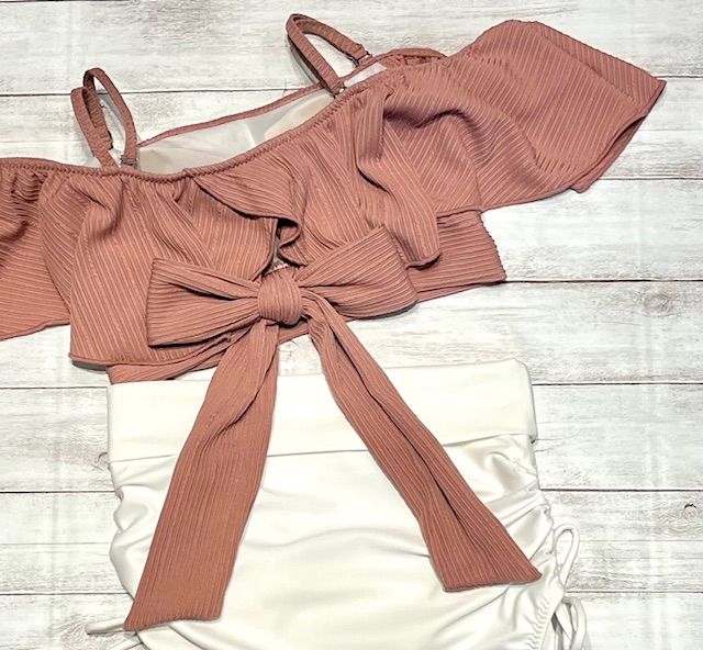 優し色味で着やすくコーデも組みやすいオフショルビキニ♡