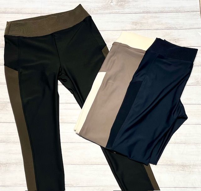 ワンカラートップスで柄のレギンスコーデも楽しめちゃいます♪