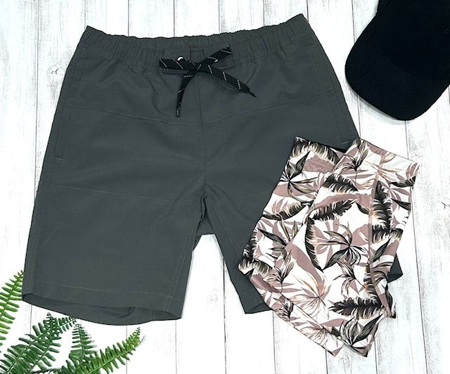 無地のサーフパンツに柄インナーでさりげない柄がポイント