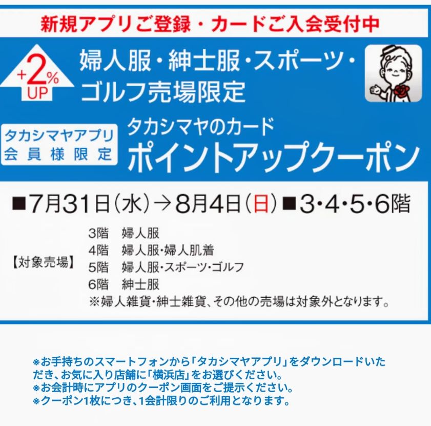 タカシマヤクポイントアップーポン配布中!