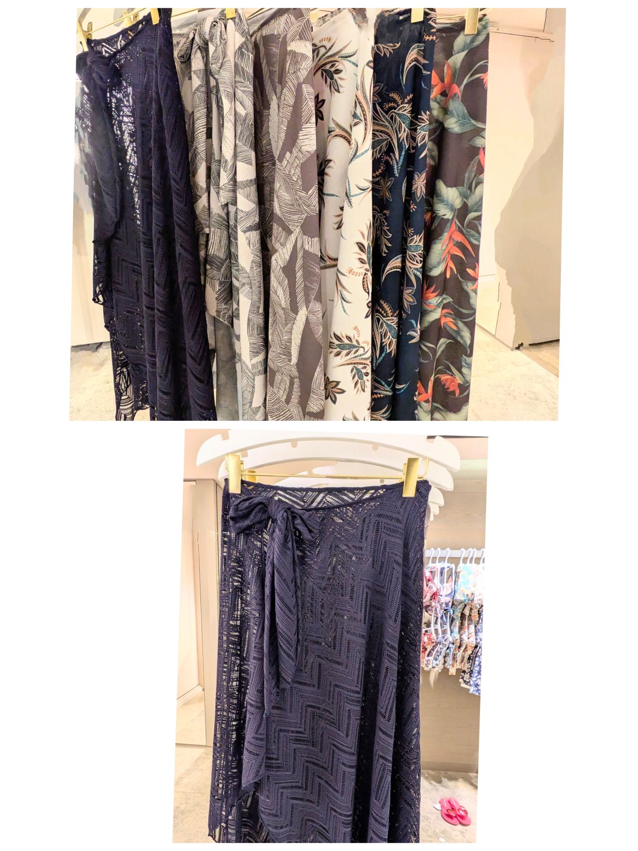 柄の水着に無地レースとのコーデ♪