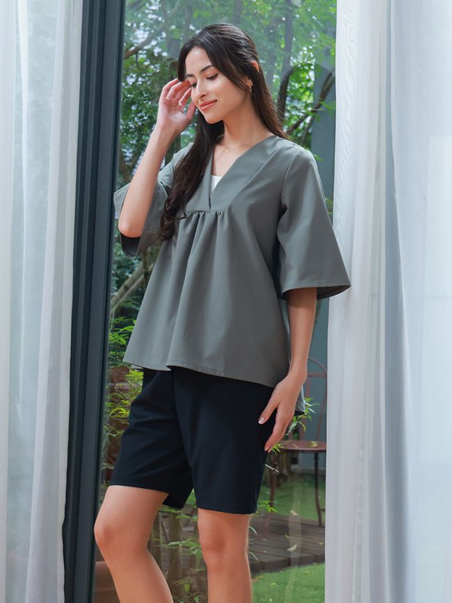 パフスリーブのお袖があり、体形が出にくいタイプ