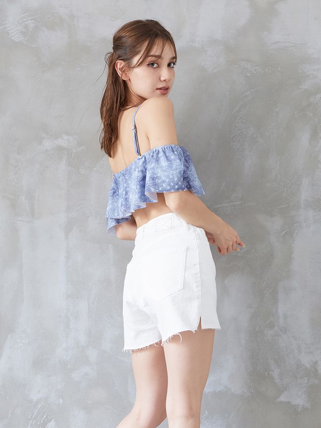 程よいボリュームのフリルが肩やデコルテラインを華奢に!