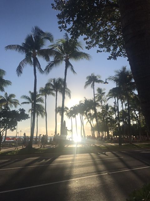 落ち着いたカラーのヤシ柄プリントが大人っぽいコーデにぴったり♡