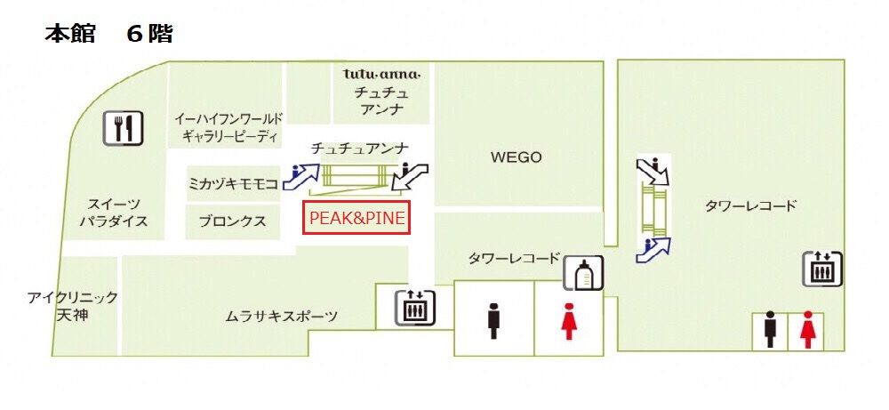 PEAK&PINE福岡パルコ店は、本館6階エスカレーターサイドです!