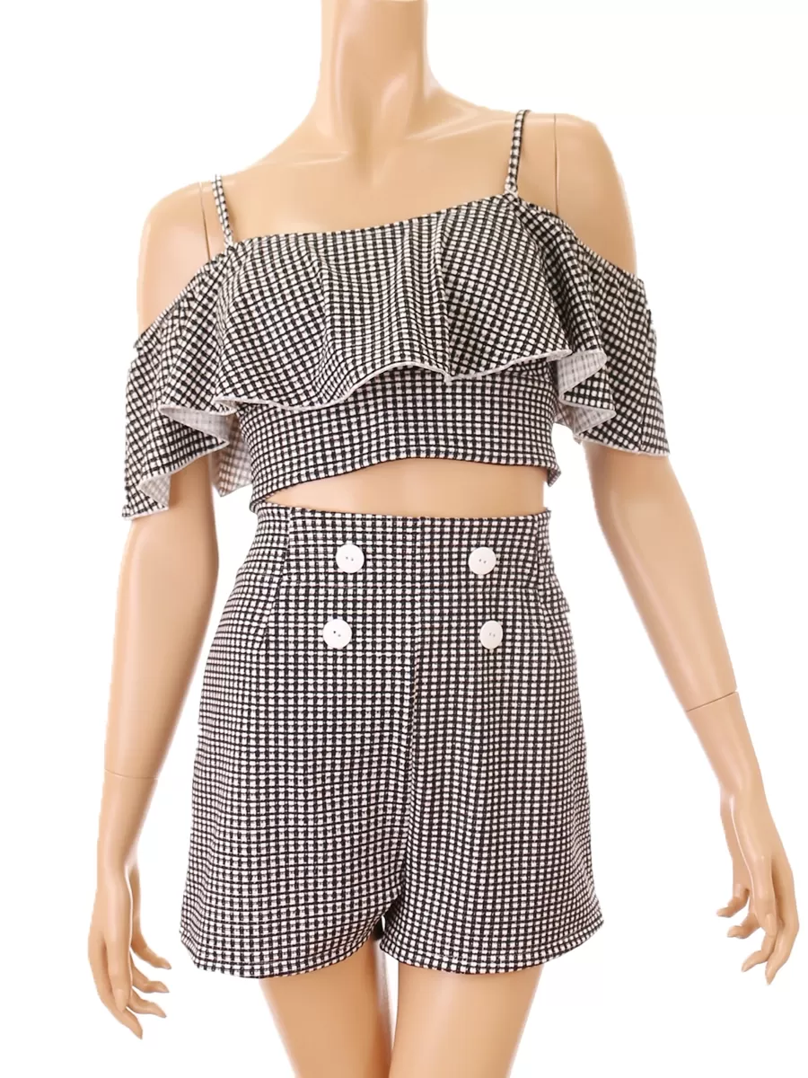 【ギンガムチェックオフショルダーワンピ見えビキニ】