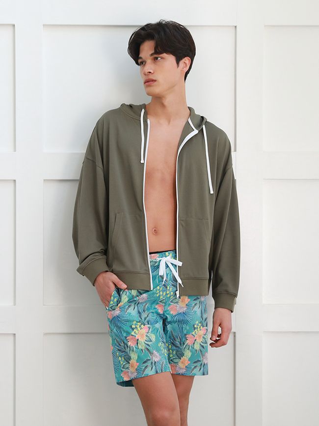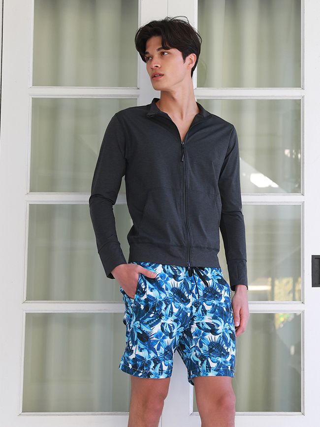 【ボタニカル柄ミディアム丈メンズサーフパンツ】