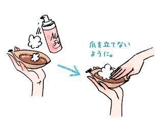 ②.専用ソープを泡立て片方の手で優しくこする様に洗う