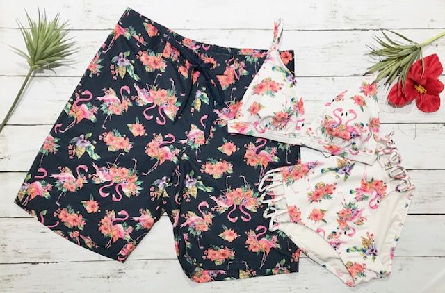 女子ウケ◎!!フラミンゴ柄メンズ水着