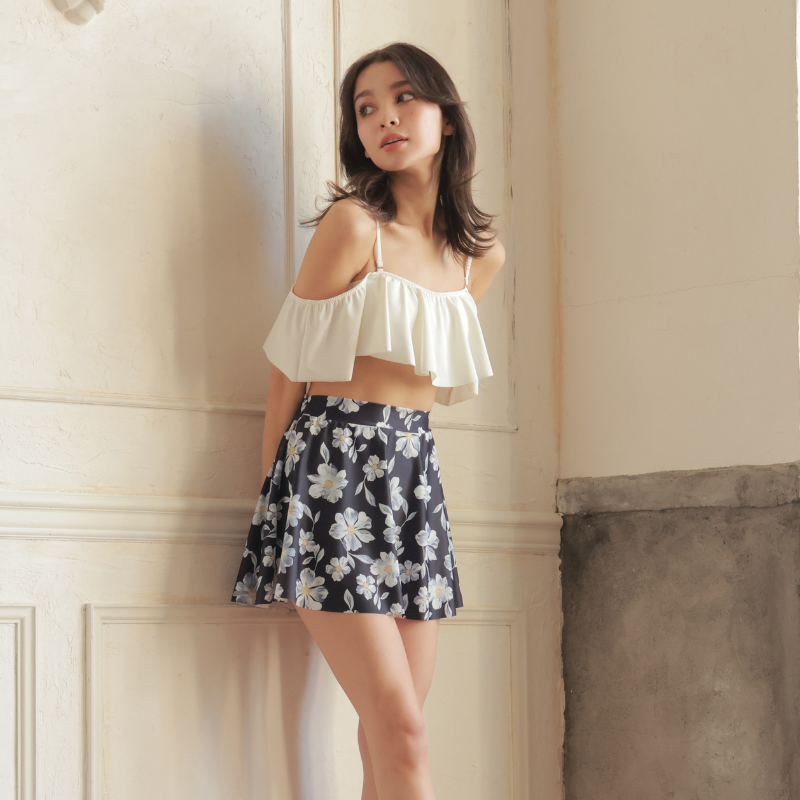 無地×レトロフラワーオフショルダービキニ【No.248026 19,800円(税込)】