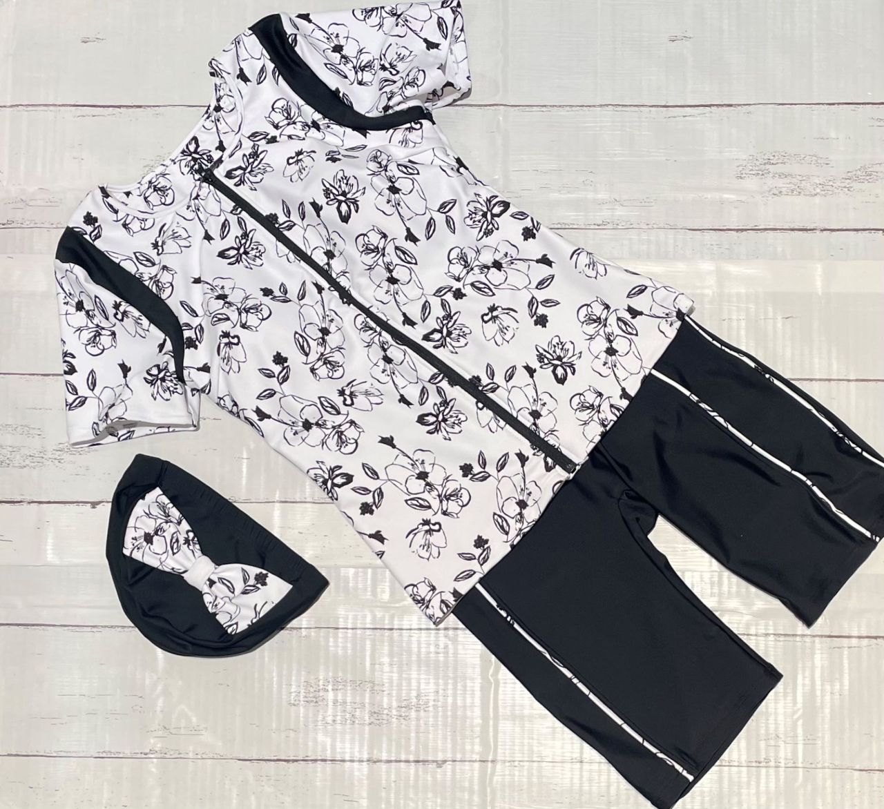 ❀モノクロ線画フラワー柄フィットネス水着❀