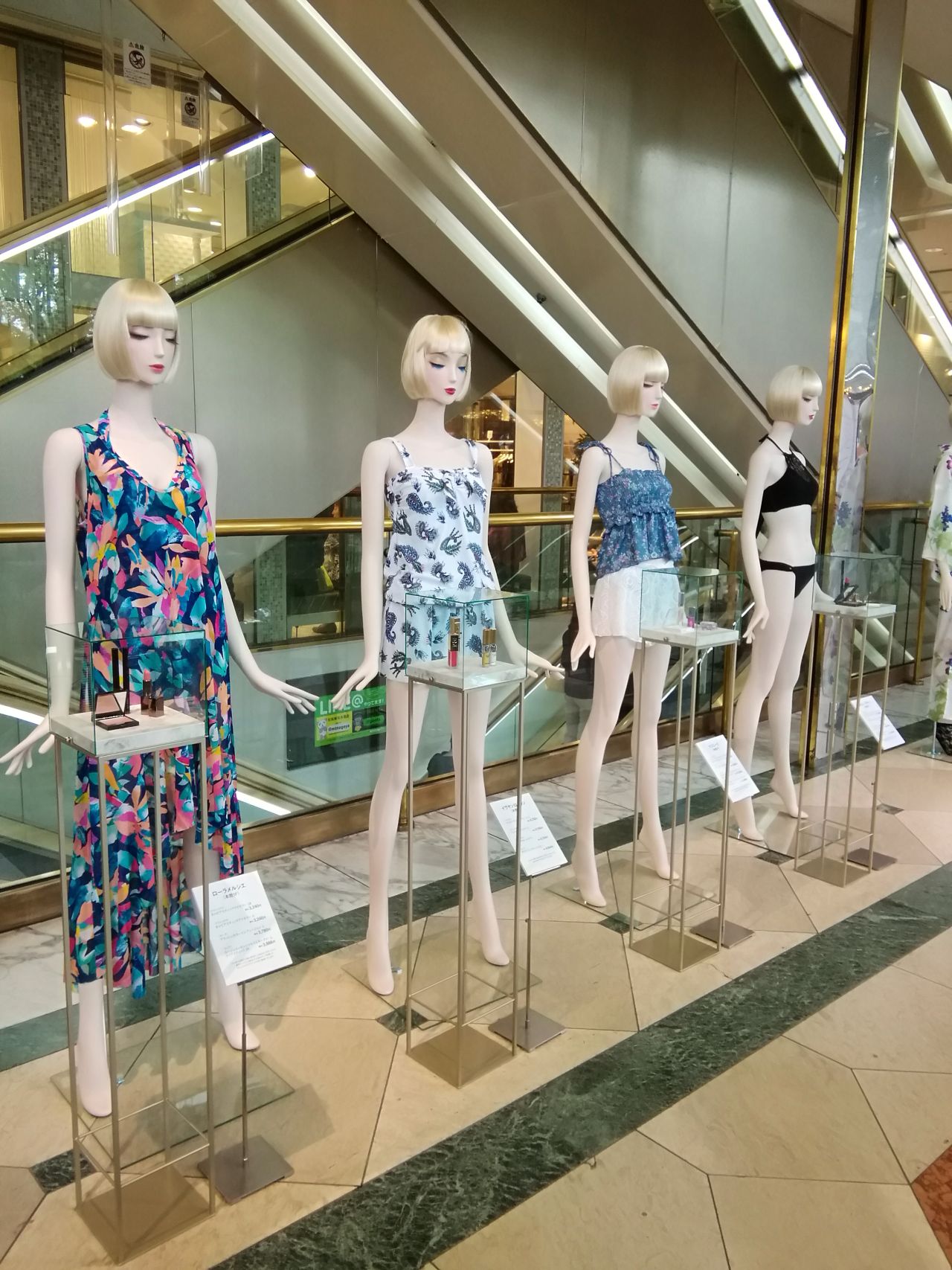 エスカレーター横に並んだ水着達