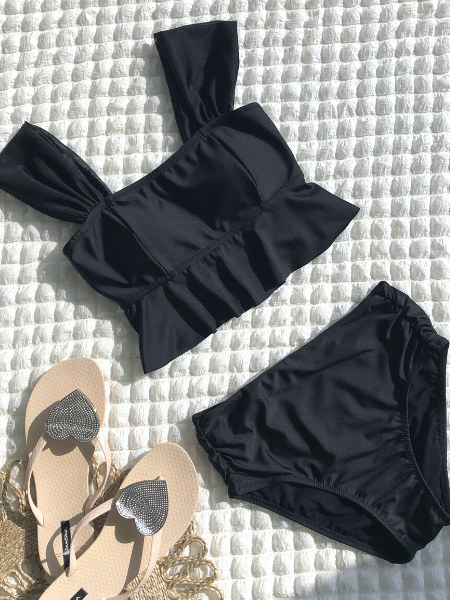無地水着なのでコーディネートが組みやすいのもポイント♥