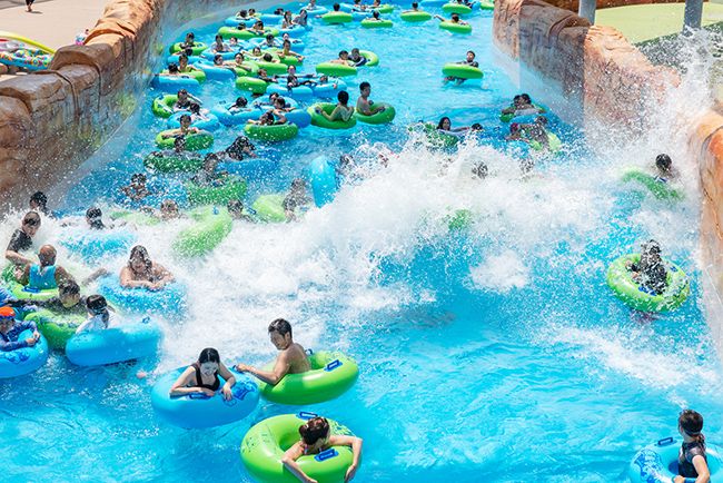 75,000㎡の広大な敷地に多彩なプールとスライダーが揃った国内最大級の海水プール!