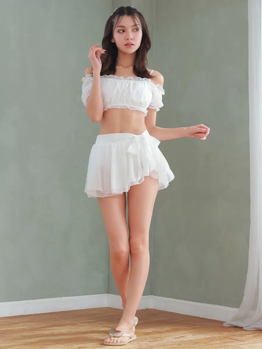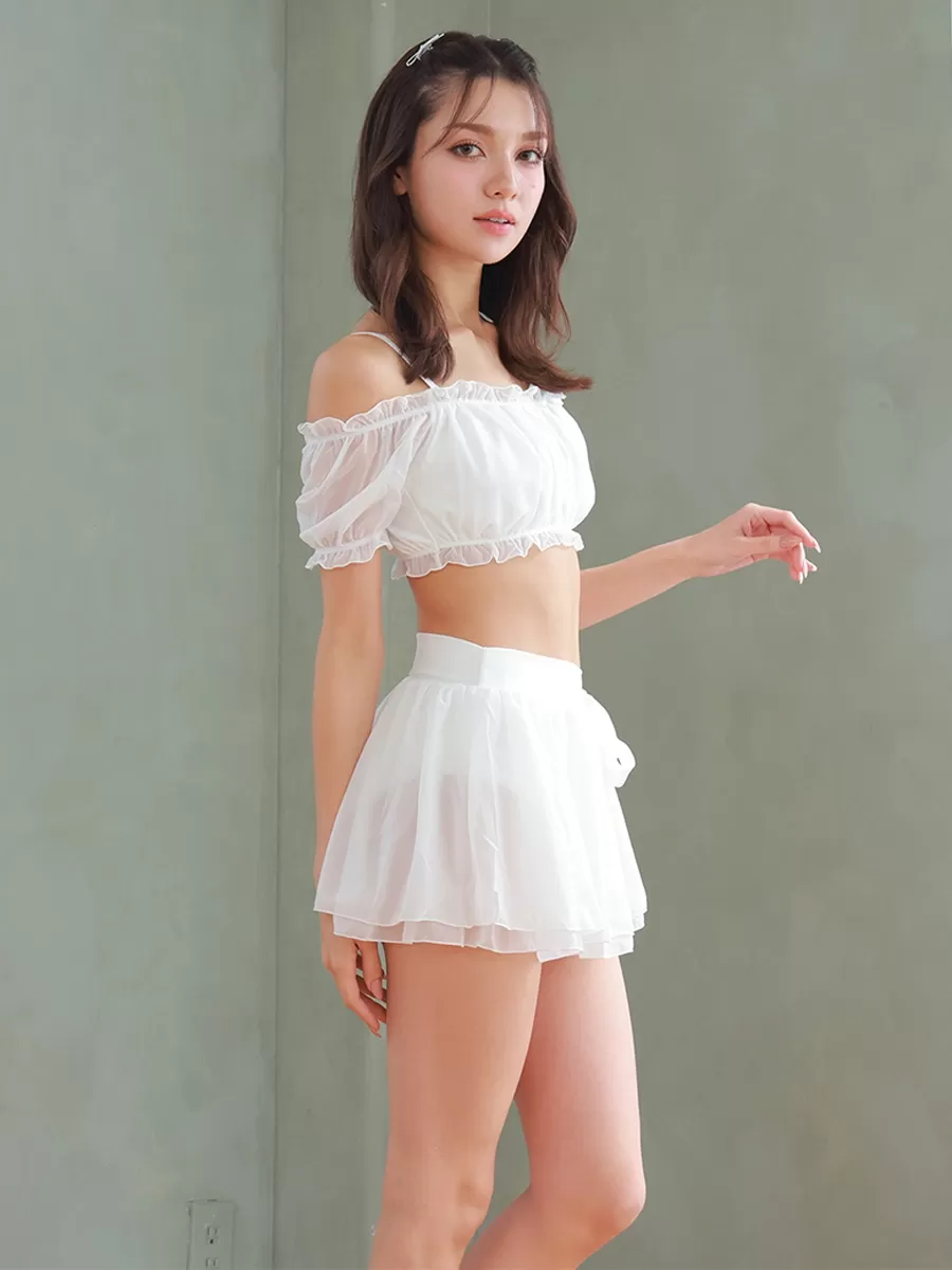 シアー素材オフショルダースカートビキニ