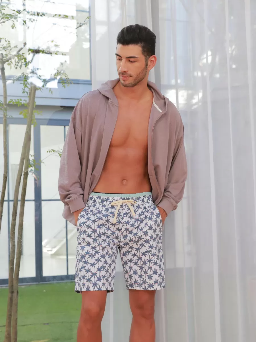 ヤシ柄プリントレギュラー丈メンズサーフパンツ