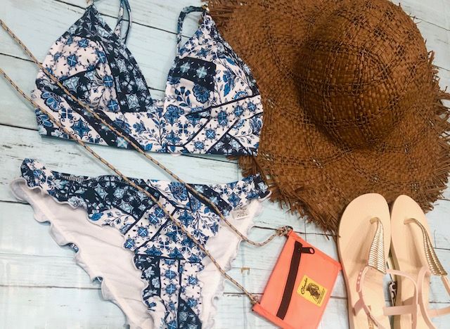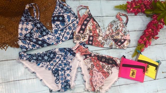 シンプルな三角ビキニの形にエスニック柄が可愛いビキニ紹介致します♡