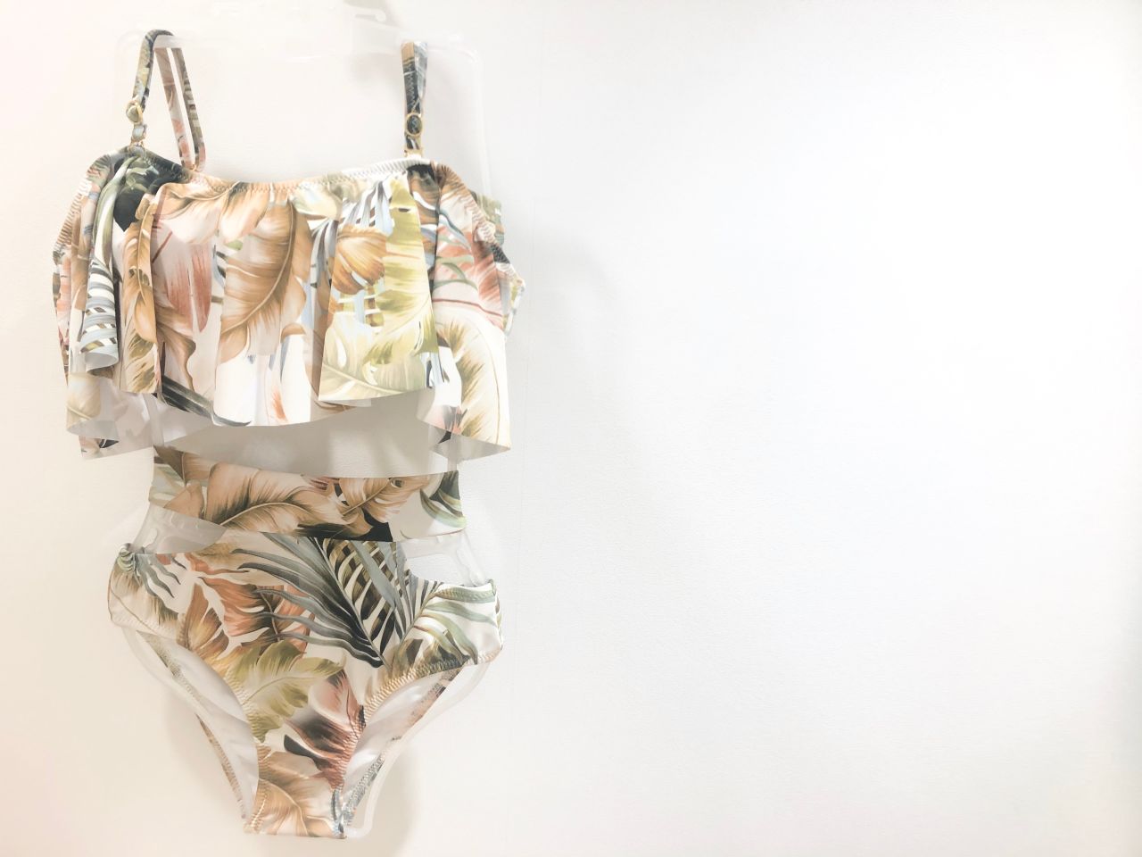 太陽の日差しを浴びた様なリーフ柄プリントの