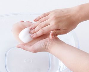 ①まずは泡で優しく洗ってください