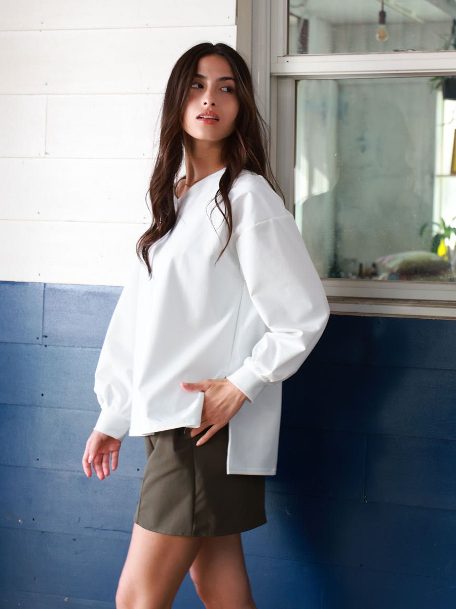 後ろ下がりのデザインで自然に体型カバー❤︎
