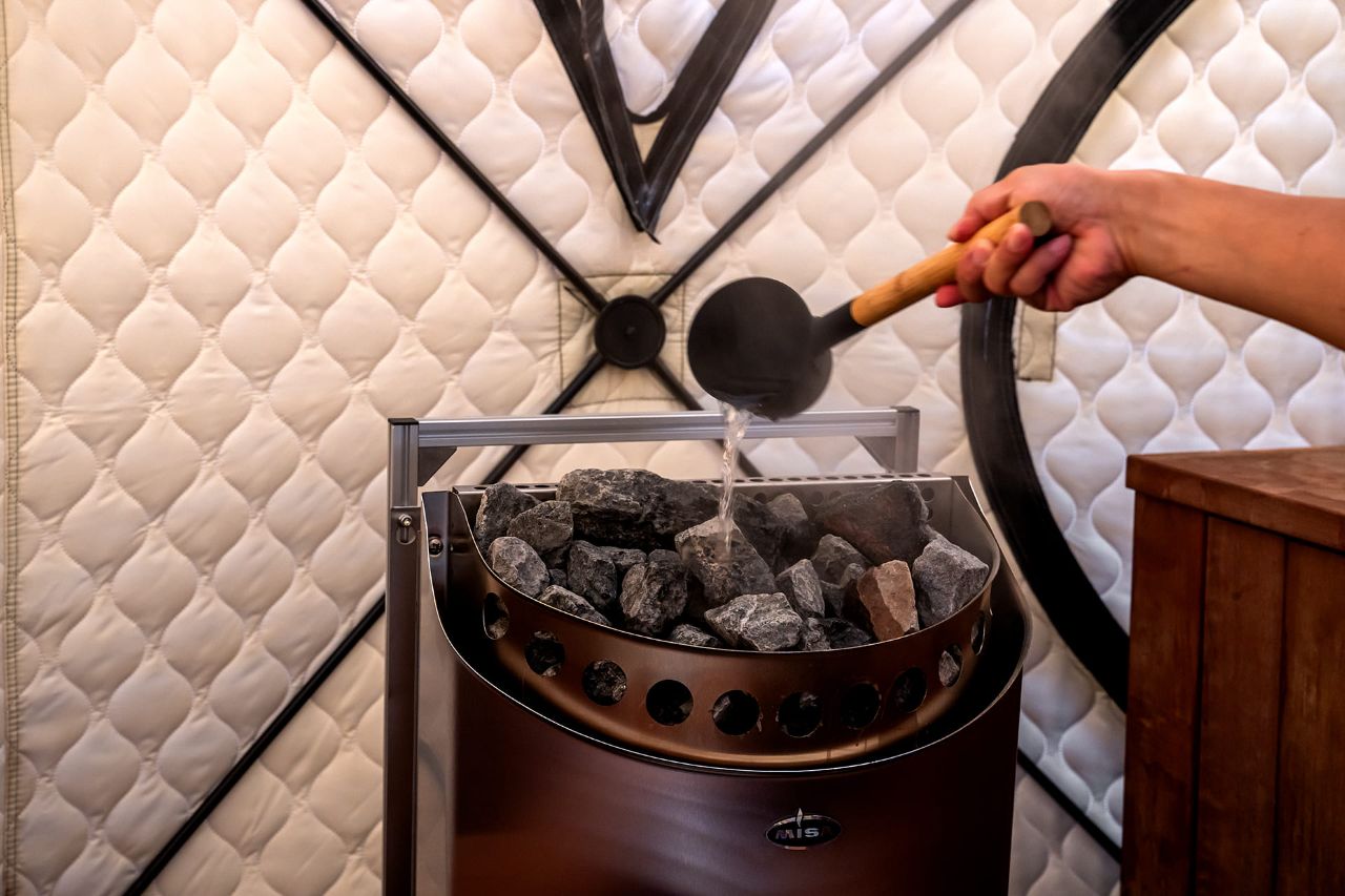 テントサウナは宿泊中入り放題、製氷機も設置しており、