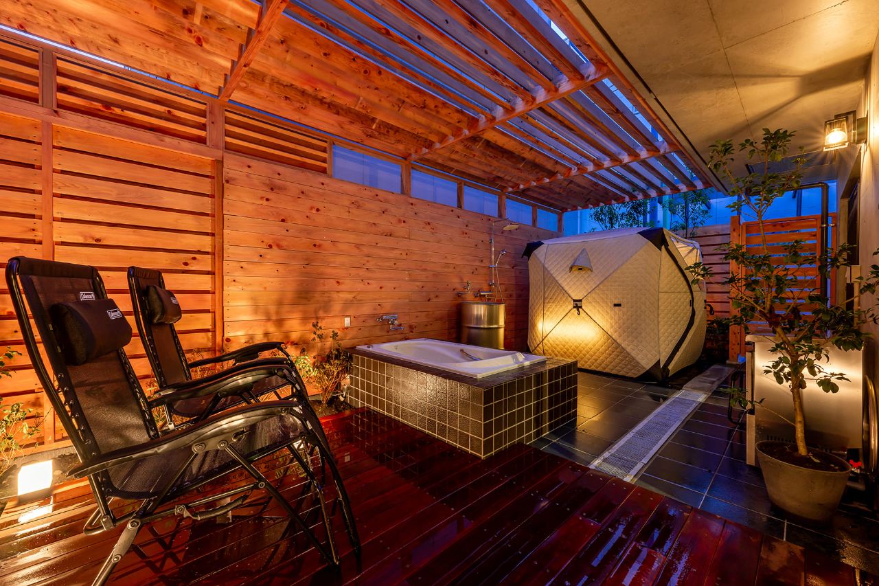 ルーフテラスにテントサウナ、水風呂、露天風呂設置、