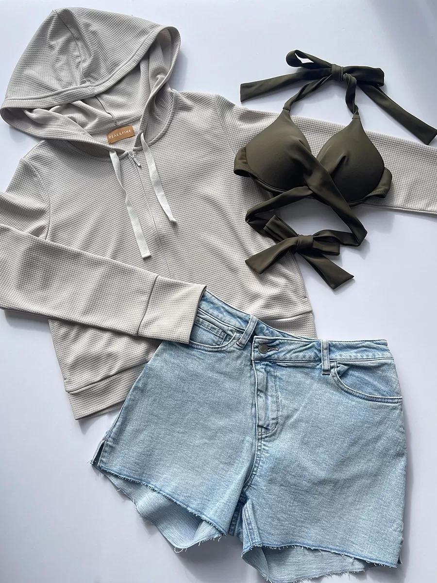 こなれ感が出る上下無地水着は、既に持っている柄の水着とコーディネートを楽しめるのも嬉しいポイント!