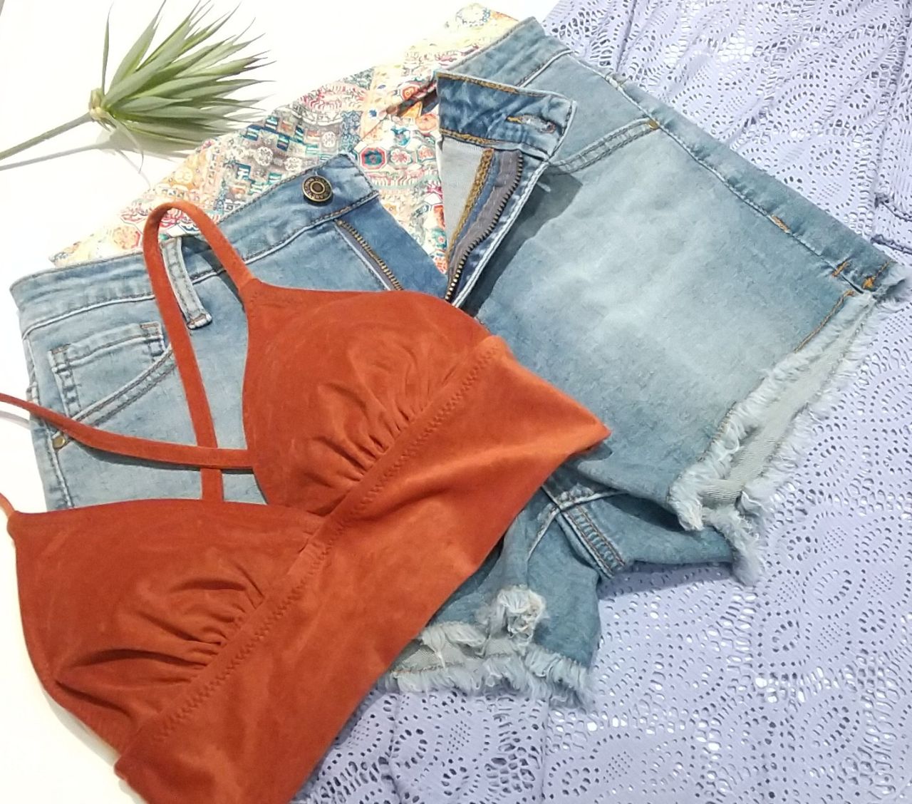 ショーツはヴィンテージ風なエスニック柄のカットアウトショーツ♡