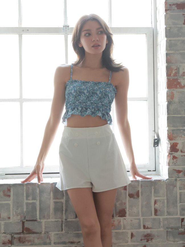 No.248010 無地ボタン付きAラインハイウエストショートパンツ