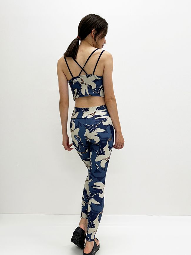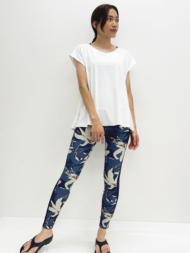 レギンス両サイドにはネイビーの無地切り替えを入れ