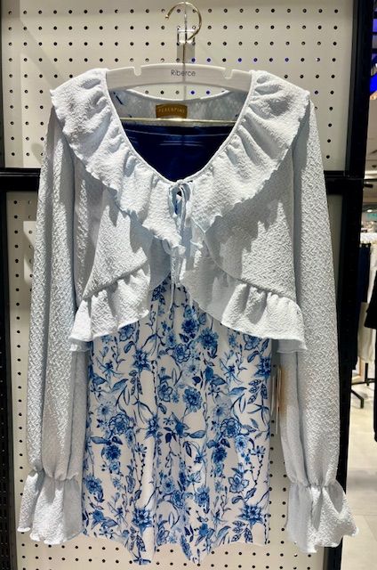 ジャガード素材で襟元の大きめフリルが可愛い新作ウェア✧