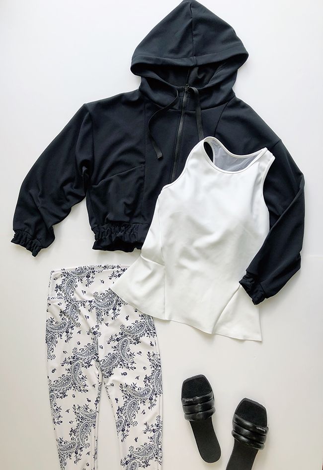 白ベースのヨガウェアを組み合わせて