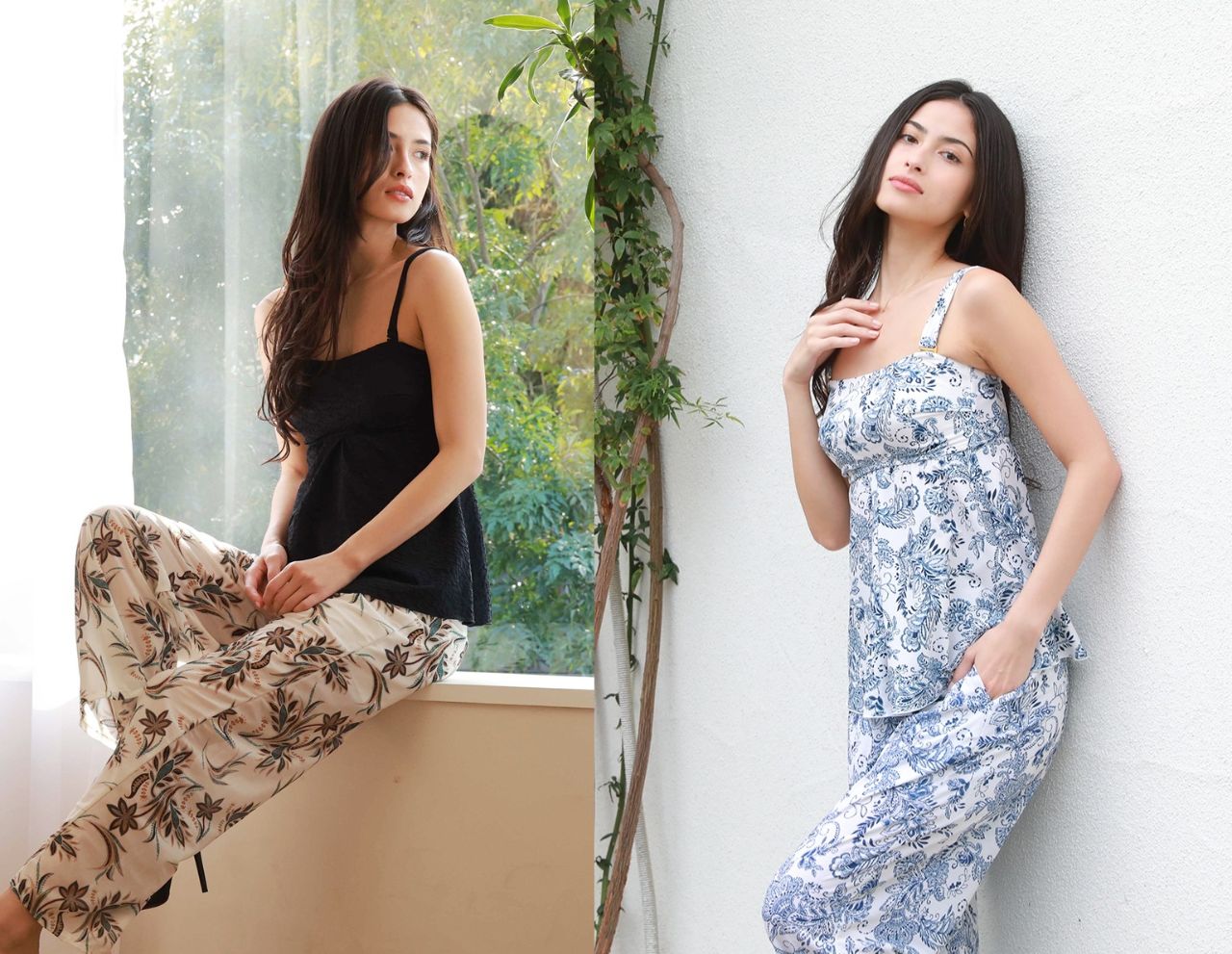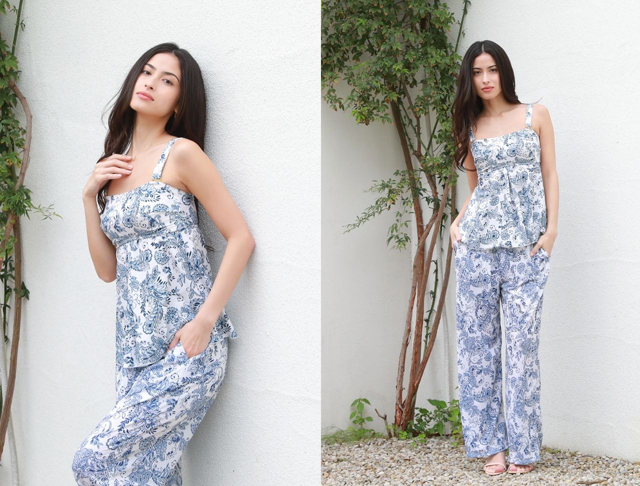 ビーチサイドではロングパンツを合わせて