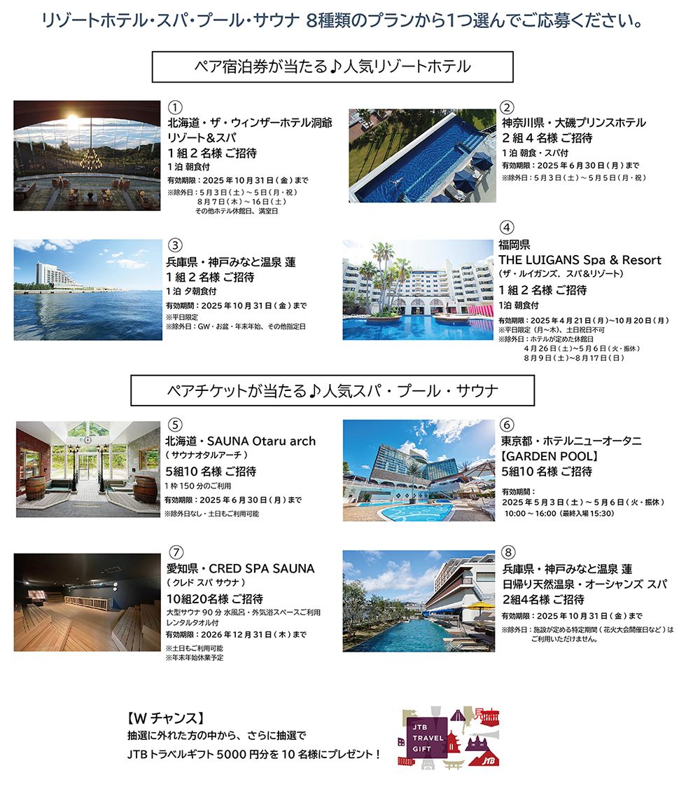 ペア宿泊券やスパ・プール・サウナのペアチケットをプレゼント!