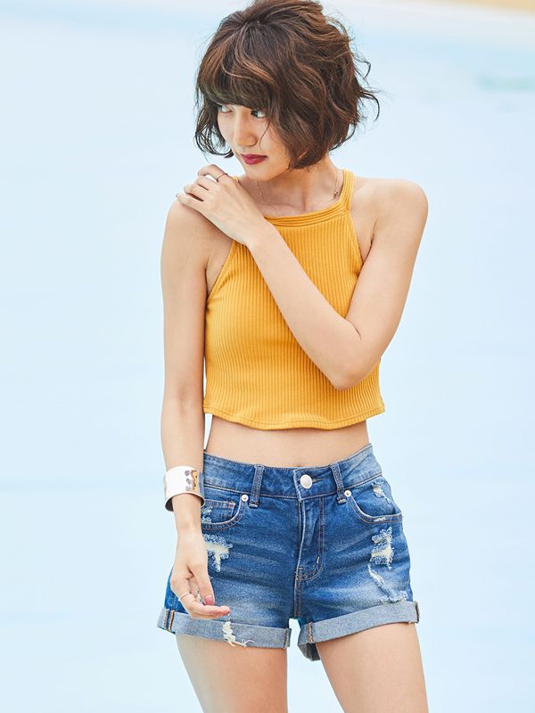 ハイライズストレッチデニムショートパンツ