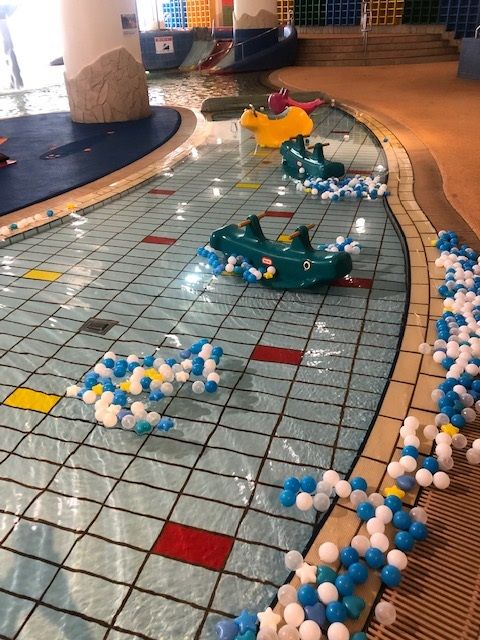 室内には広いプールがいくつもあり