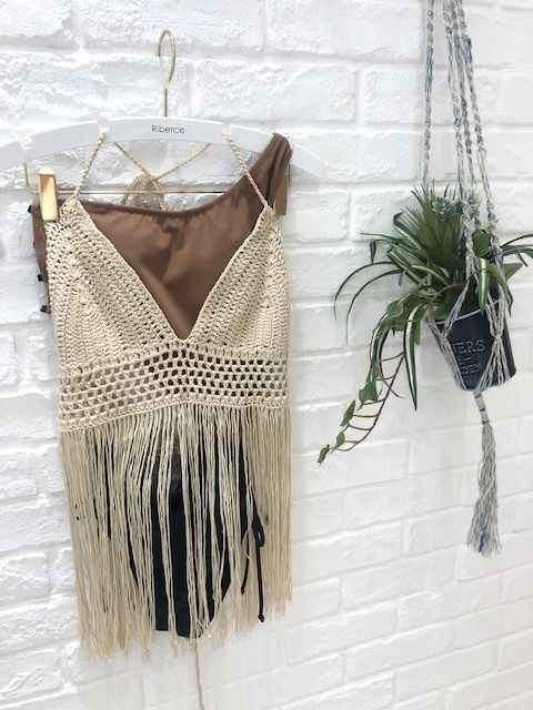 クロシェニットフリンジトップス